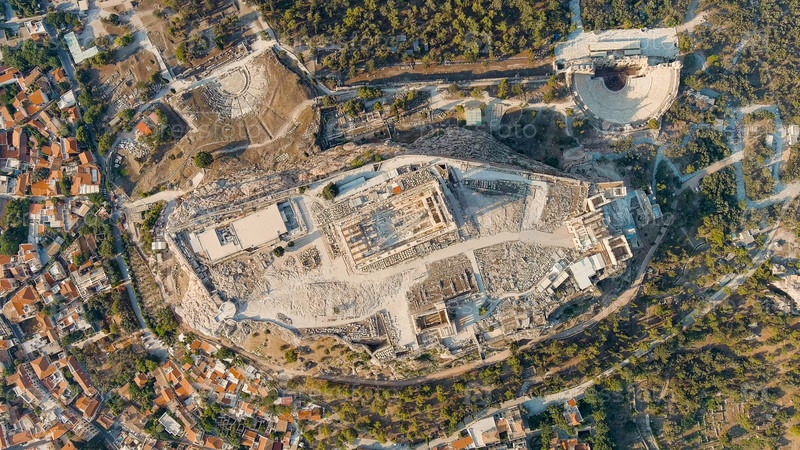 Акрополь Афин в свете утреннего солнца Лето, вид с воздуха
