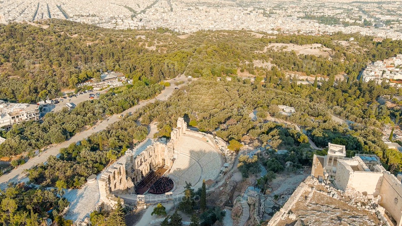 Акрополь Афин в свете утреннего солнца Лето, вид с воздуха