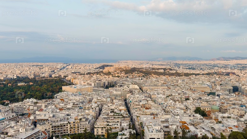 Акрополь Афин в свете утреннего солнца Лето, вид с воздуха