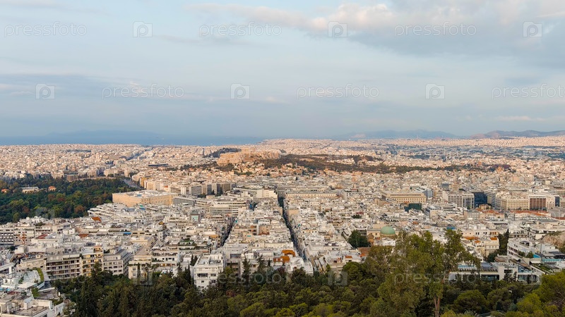 Акрополь Афин в свете утреннего солнца Лето, вид с воздуха