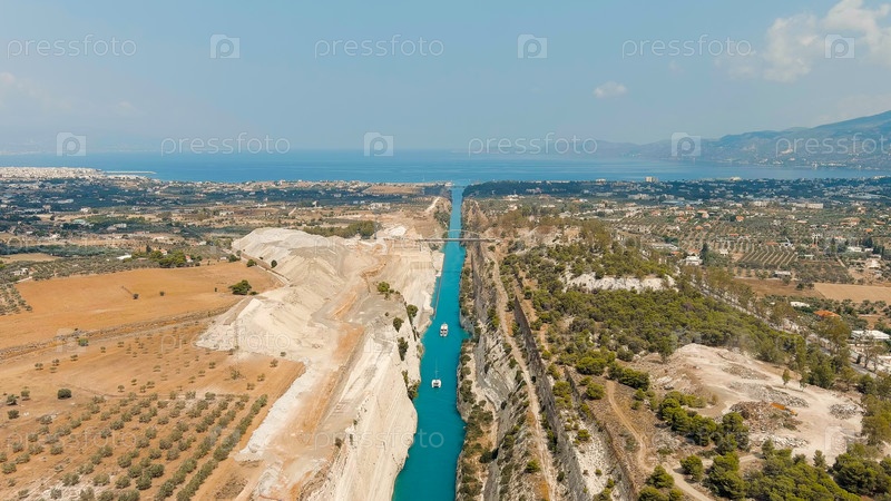 Коринфский канал - это судоходный канал в Греции, соединяющий Саронический залив Эгейского моря и Коринфский залив Ионического моря