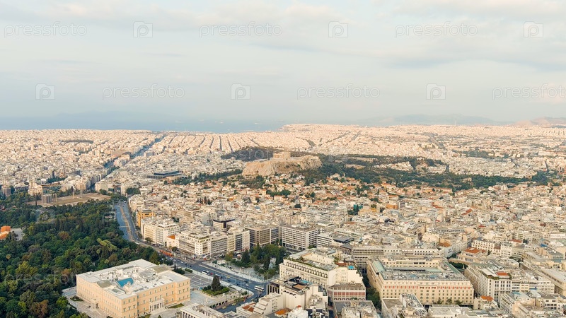 Акрополь Афин в свете утреннего солнца Лето, вид с воздуха