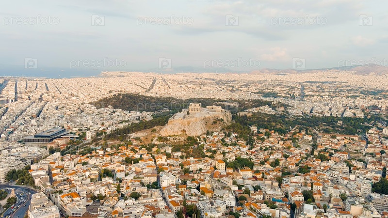 Акрополь Афин в свете утреннего солнца Лето, вид с воздуха