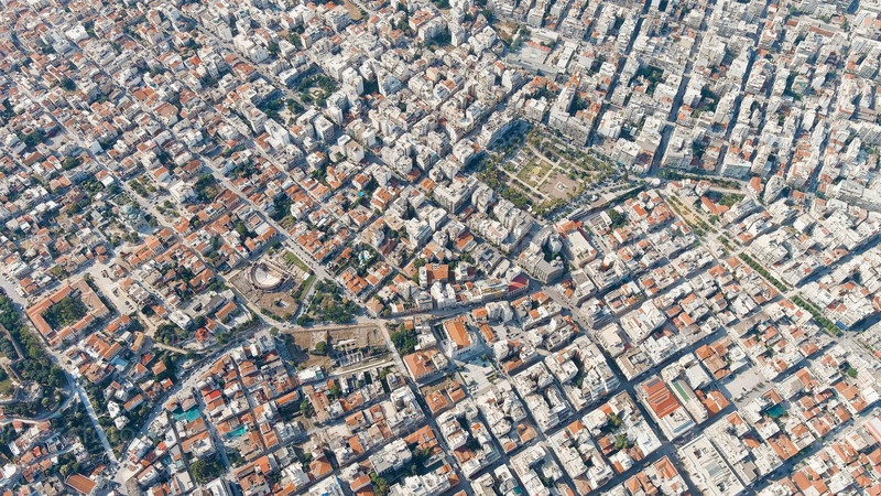 Патра, Греция.Центральная часть города летом.Солнечный день, вид с воздуха
