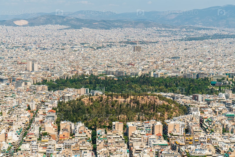 Афины, Греция. Холм Стрефи. Панорама города. Летний солнечный день