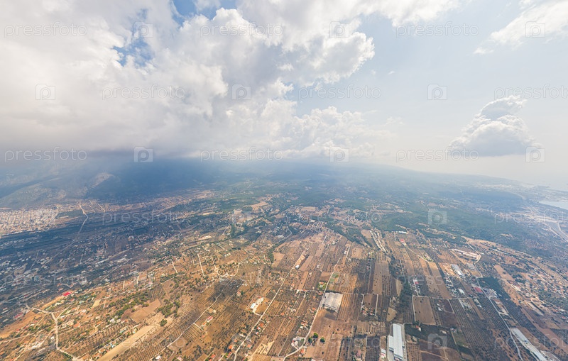 Истмия, Греция. Лутраки-Перахора. Летний день. Облачная погода. Лето. Вид с воздуха