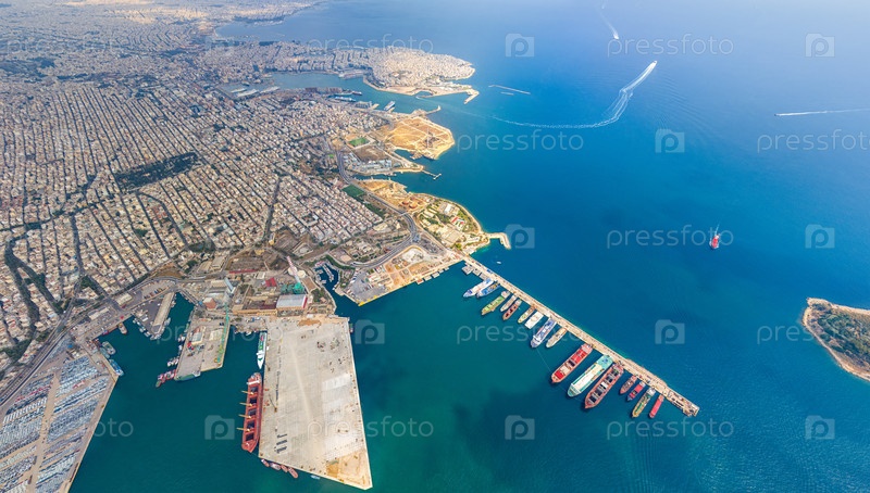 Афины, Греция.В доке ремонтируются суда.Лето.Вид с воздуха