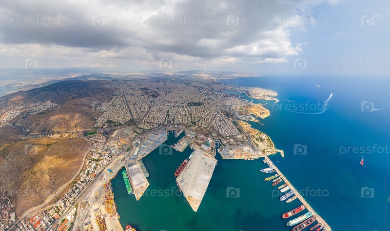 Афины, Греция Грузовой порт с контейнерами Лето