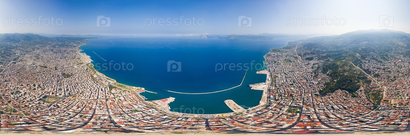 Патра - третий по величине город Греции, расположенный на северо-западной оконечности Пелопоннеса. летний день. панорама 360. вид с воздуха
