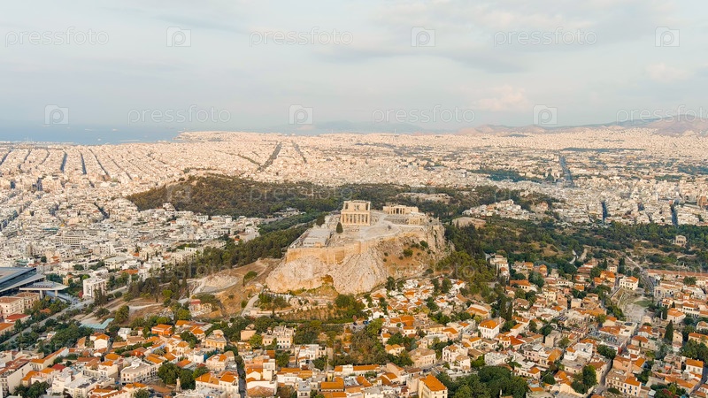 Акрополь Афин в свете утреннего солнца Лето, вид с воздуха