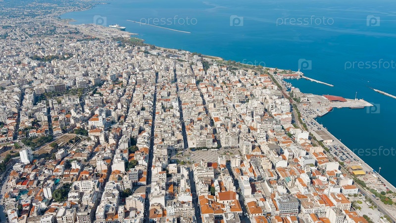 Патра, Греция.Центральная часть города летом.Солнечный день, вид с воздуха
