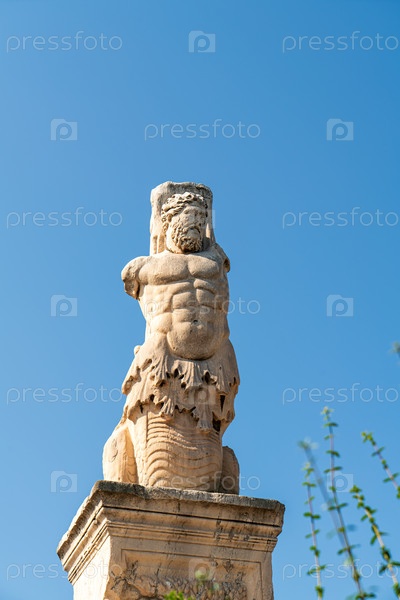 Афины, Греция. Древние статуи. Одеон от Агриппы. Афинская агора. Летний солнечный день