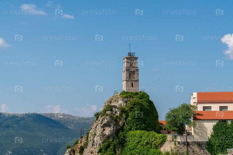 Арахова, Греция. Араховская часовая башня. Летний день