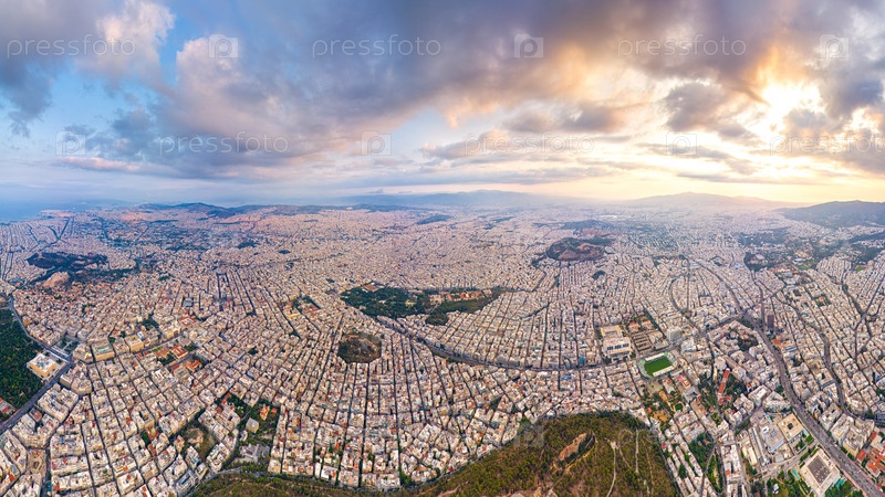 Большая панорама центральной части города.Утреннее солнце.Вид с воздуха
