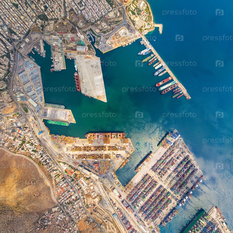 Афины, Греция Грузовой порт с контейнерами Лето