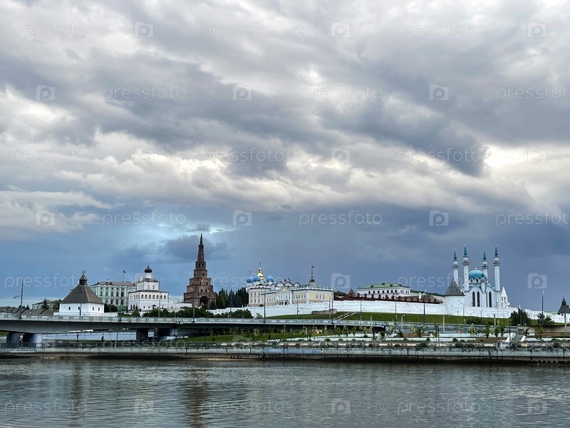 Казанский Кремль и башня Сююмбике в пасмурный летний день, Россия