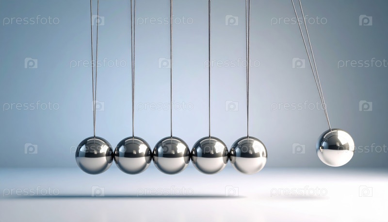 Колыбель Ньютона в движении демонстрирует физический принцип сохранения импульса и энергии, часто символизируя принятие решений или причинно-следственную связь