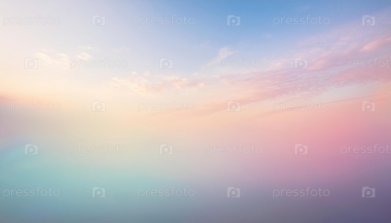 Мечтательный пастельный градиент неба, смешивающий мягкие облака и спокойные оттенки розового и синего на рассвете или закате