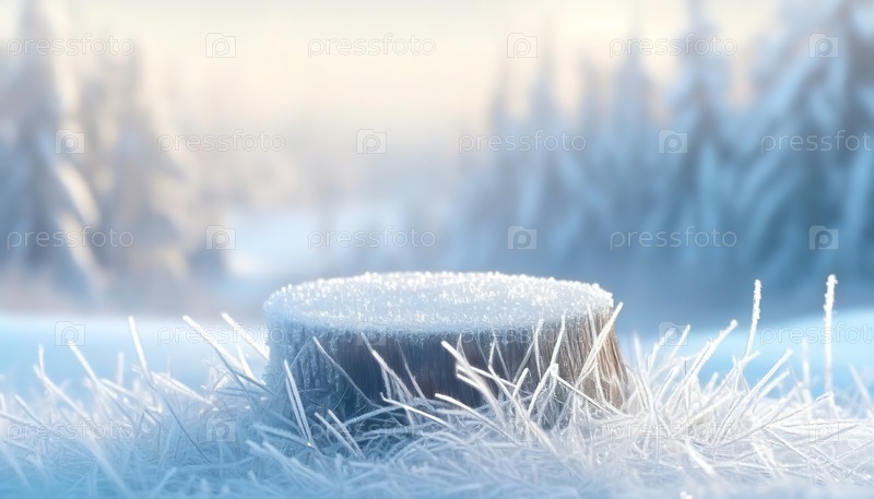 Замороженный ствол дерева в снежном ландшафте с лесным фоном