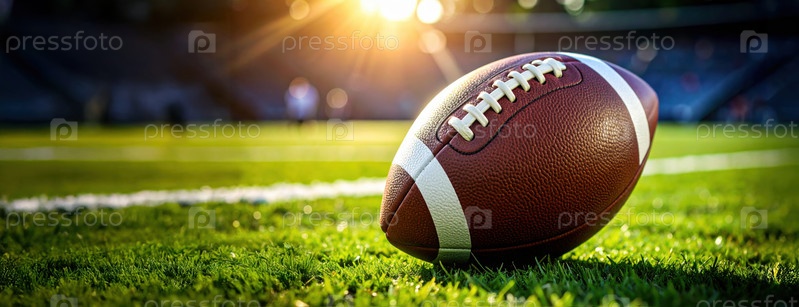 Закрытие футбольного матча на травяном поле на рассвете предполагает игровой день, ожидание и спортивный дух