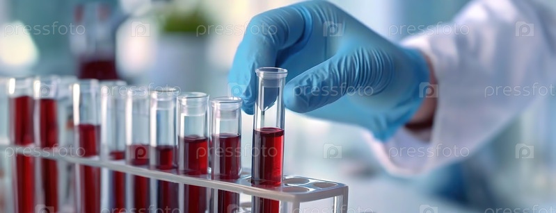 Лабораторный ассистент, выполняющий анализ крови, точно обрабатывает трубки в стерильной среде