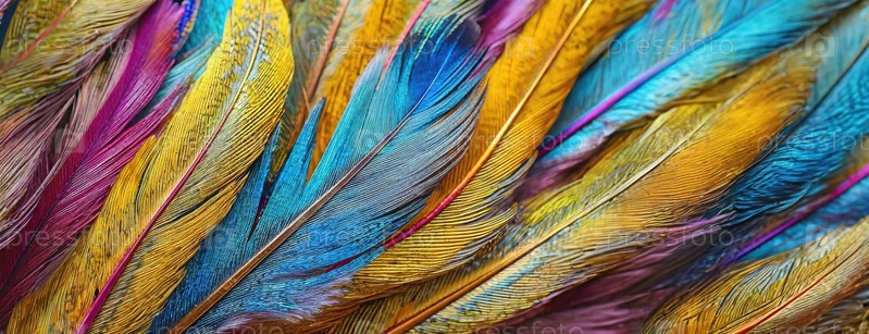 Абстрактные красочные перья павлин. яркий текстурный фон. панорама с копировальным пространством