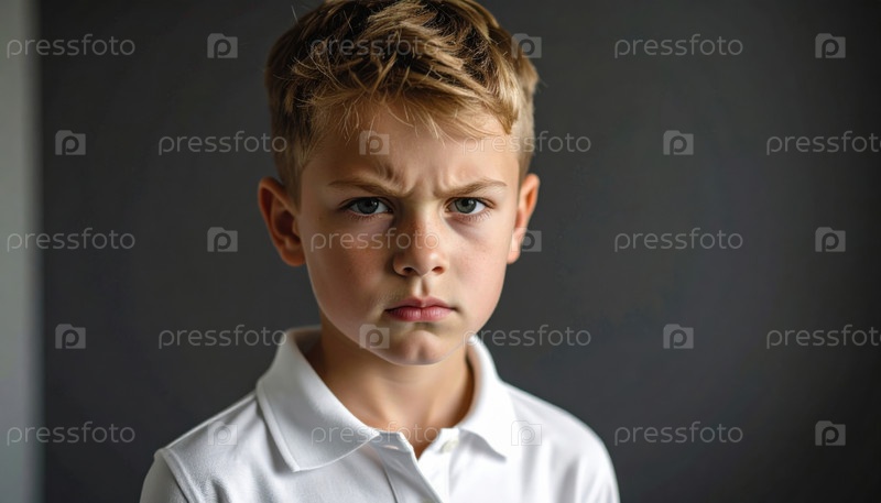 Маленький мальчик, выражающий сильный гнев или разочарование на ближайшем портрете, полезен для темы эмоций, детского поведения или осведомленности о психическом здоровье