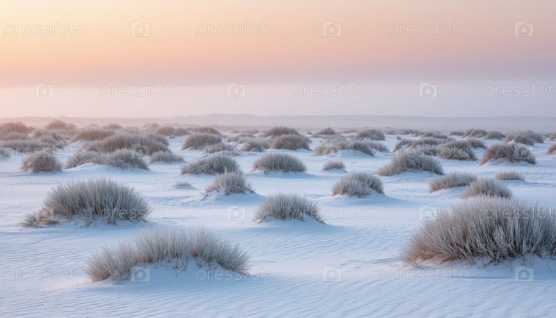Белая степь в розовом тумане