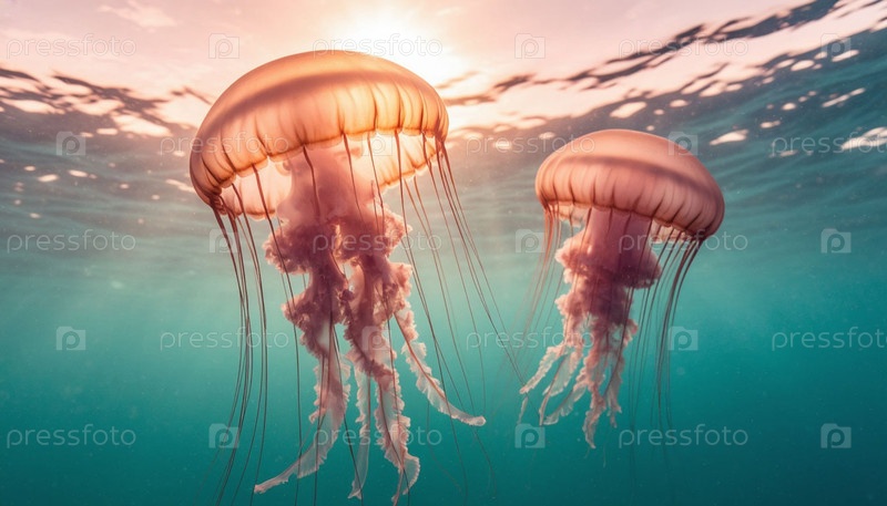 Морские медузы под водой на рассвете