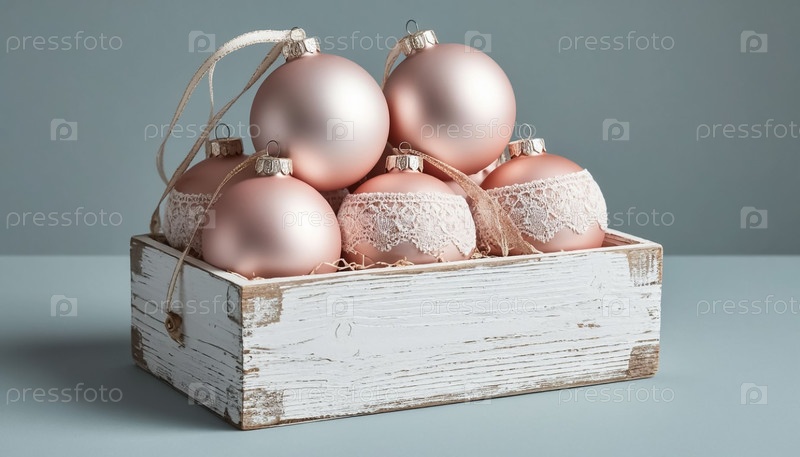 Пастельные рождественские шары в белой деревянной коробке