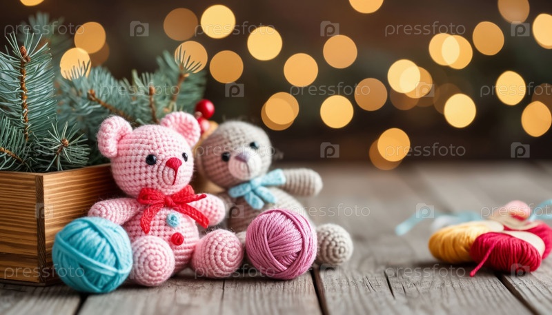Ручные рождественские украшения на деревянном столе - уютный ручной праздничный декор с сельским очарованием
