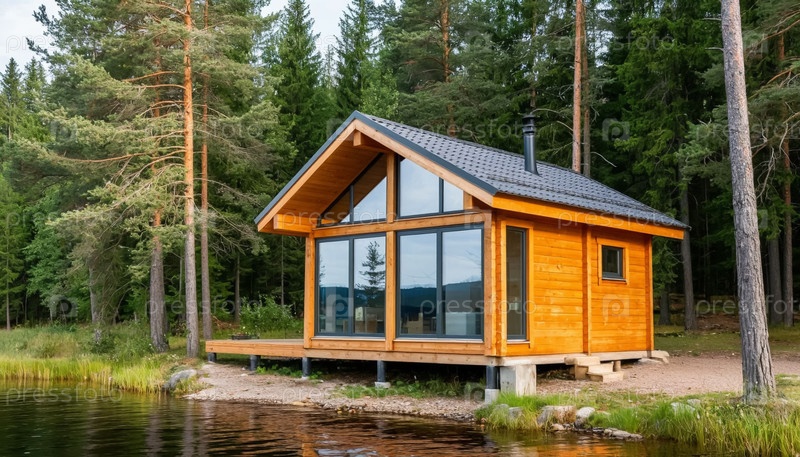 деревенский коттедж в лесу у реки. отдых на открытом воздухе. кемпинг. генерация ИИ