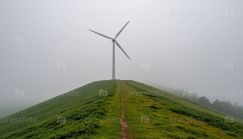 Ветряная турбина на вершине зеленого холма