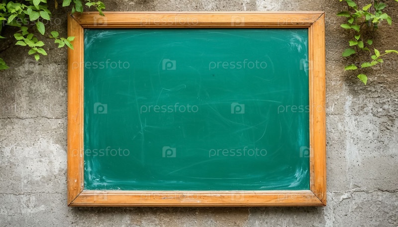 Зеленая доска на каменной стене с растениями - деревенская образовательная эстетика, сочетающая природу и традицию