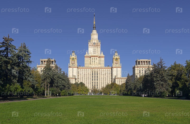 Главное здание Московского государственного университета имени Ломоносова. солнечный день в середине сентября