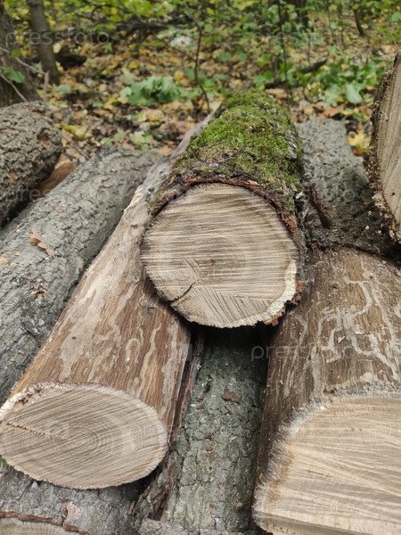 Древесные бревна, срубленные деревья в лесу