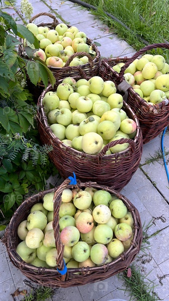 Яблоки в корзинах