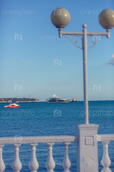 Большая белая яхта расположена в Геленджикской бухте