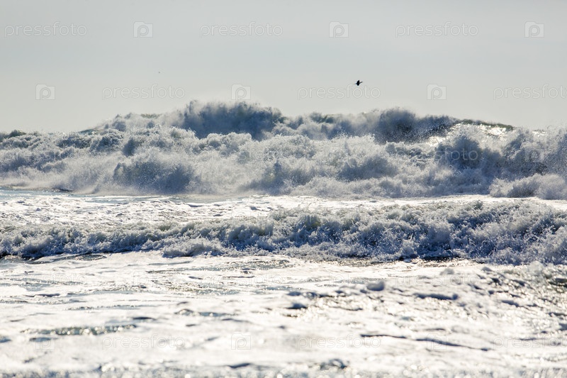 Шторм в Черном море. большие штормовые волны. пена и спрей