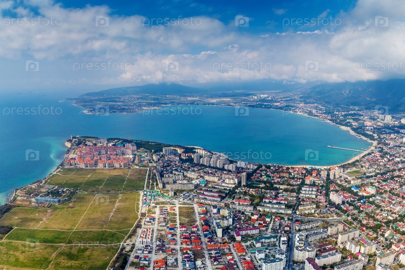 Панорама курорта Геленджик сверху.Геленджикский залив, Кавказские горы