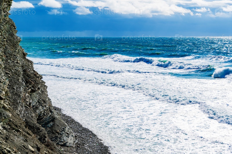 Кабардинский курорт. штормовые волны ударили по крутым скалам