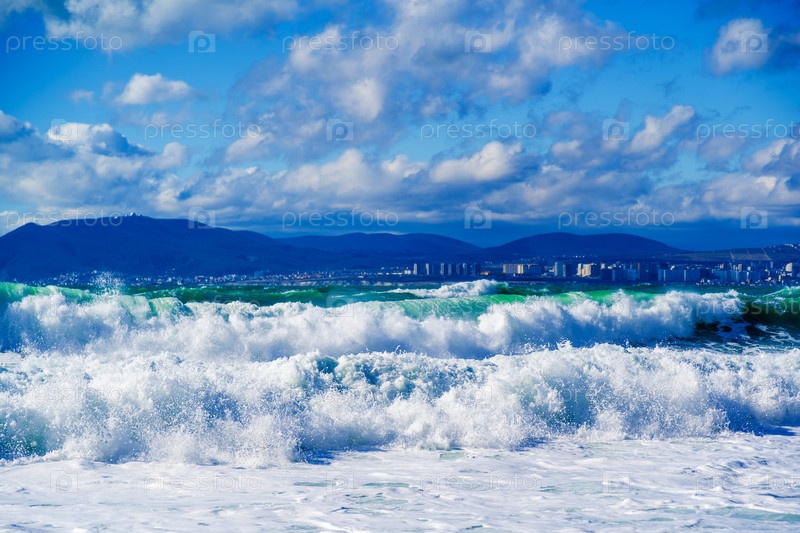 Океан бурный, а небо облачное
