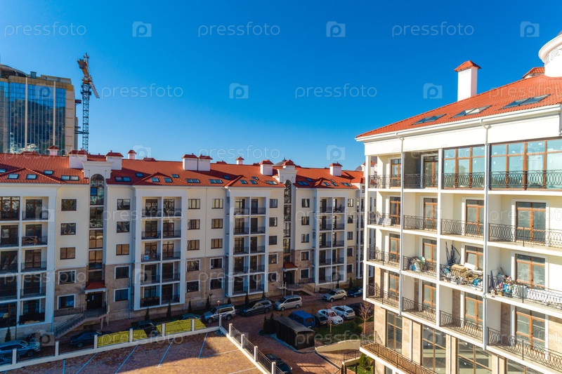Многоэтажный жилой комплекс с красными крышами расположен на берегу залива Геленджик