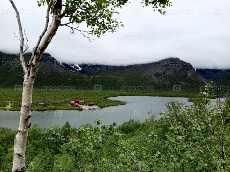 Маленькое озеро Вудьявр у подножия гор.Мурманская область