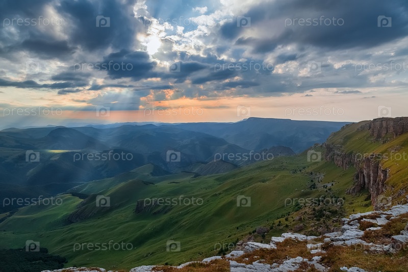 Горный пейзаж заката солнца