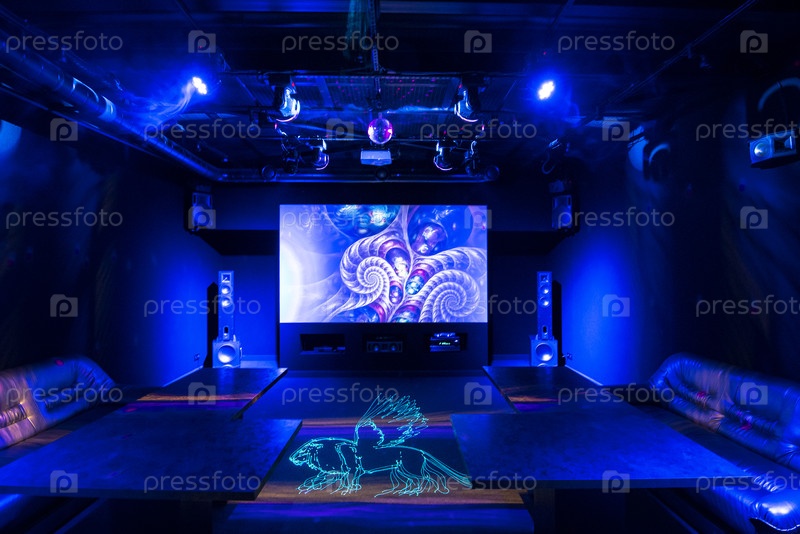Кафе с лазерным освещением и эффектами дыма