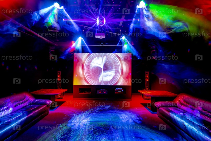 Кафе с лазерным освещением и эффектами дыма