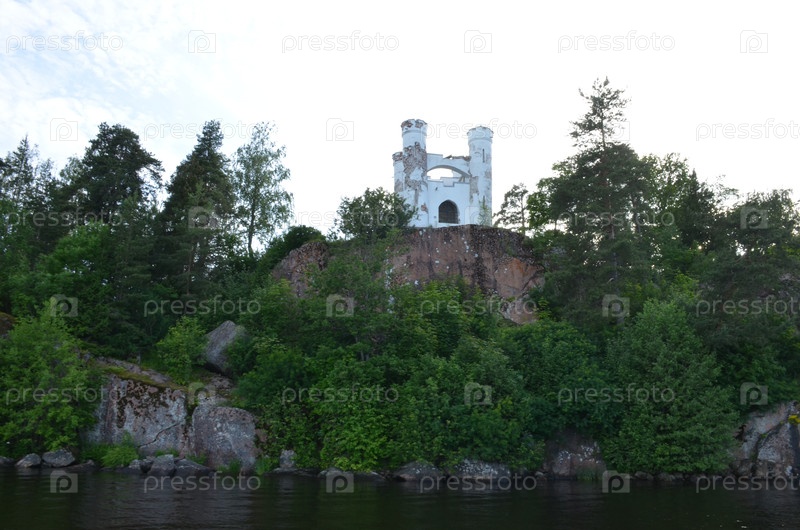 Вид на остров Людвигштейн и часовню Людвигсбурга в защитном заливе у особняка Монрепо недалеко от Выбора