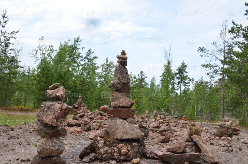 Сад из камней (балансирующие камни) на экотропе ландшафтного парка Монрепо в Выборге, Ленинградская область