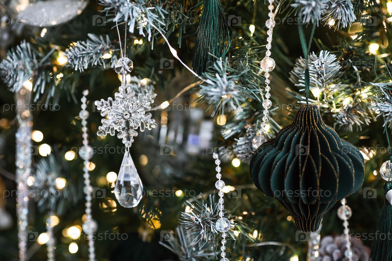 Стильные украшения рождественской елки в интерьере дома Зеленые тона Концепция стильного Нового года и Рождества 2026